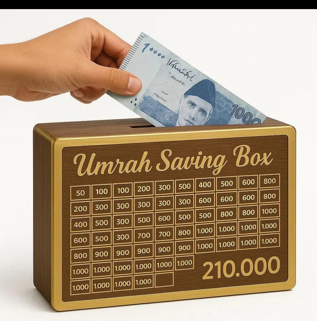 The Umrah Saving Box is a beautifully crafted wooden money box designed to help you save daily for 280 days, making your journey to Umrah or Hajj financially achievable and spiritually fulfilling. This Islamic halal money jar promotes disciplined savings and encourages you to stay committed to your pilgrimage goals.